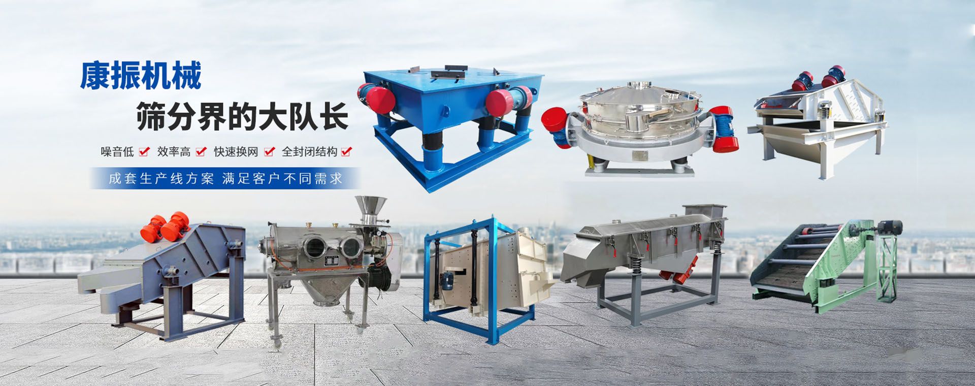 河南康振機械有限公司是一家集篩分設備、振動機械、輸送機械、包裝設備、礦用設備、環保設備、篩網、電機、機械設備及技術開發、制造、銷售和維修為一體的現代化公司。康振機械位于“振動篩分之鄉”河南新鄉市,交通便利,緊鄰京廣、新菏鐵路交匯處及長濟高速西出口。康振旗下產品有八大系列(振動篩分設備丨精細篩分設備丨提升設備丨輸送設備丨環保設備丨給料設備),70多個品類。其中,精細篩分包含:三次元振動篩,超聲波振動......