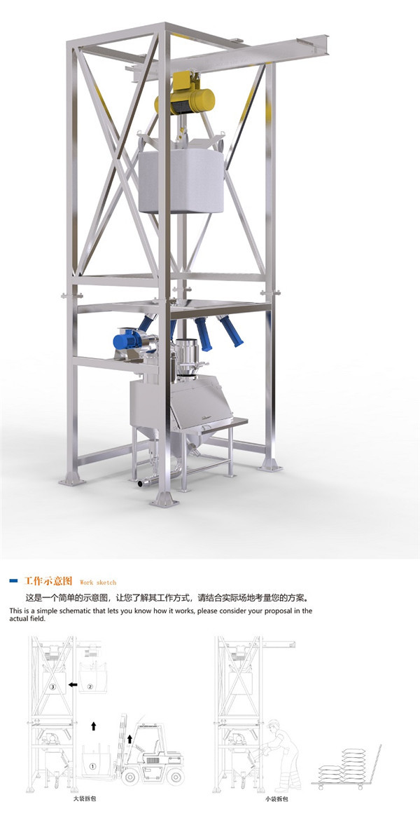 適用工況:普通物料及流動性不好、易吸潮、結塊物料的大袋包裝物料。