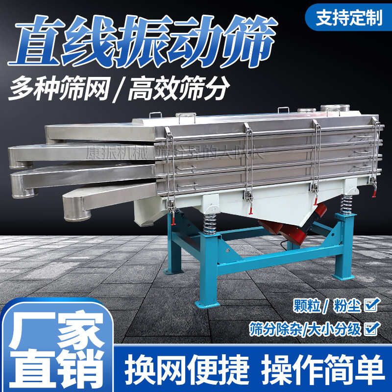 對粉狀、顆粒狀物料的篩選和分級,廣泛應用于塑料、磨料、化工、醫藥、建材、糧食、炭素、化肥等行業.直線振動篩(直線篩)系新型的篩分設備,廣泛用于礦山、煤炭、冶煉、建材、耐火材料、輕工、化工等行業。